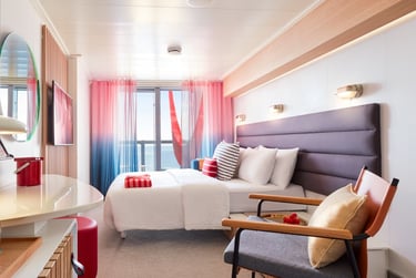 Virgin rethought cruise cabins to make them feel more like boutique hotel rooms than traditional cruise staterooms.