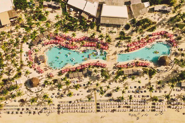 Instead of a theme-park style island, Virgin created a stylish beach club experience with: